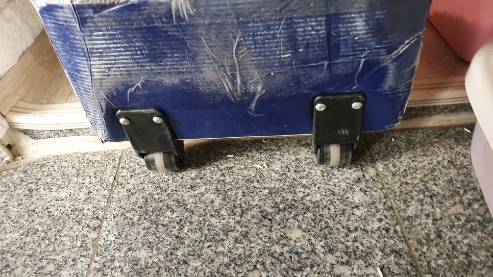 상자밑에 바퀴가 달려있어서 참 다행입니다. 머리 부분에는 손잡이도 붙어있습니다.